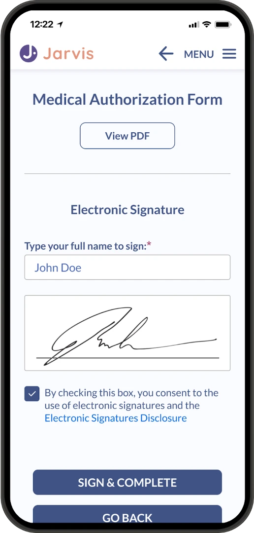 Claimants automatically receive a pre-filled medical authorization that they can sign/authorize with just a keystroke on their phone, automatically sending the completed document back to your claim system while the claimant has a signed copy on their device for their own records.