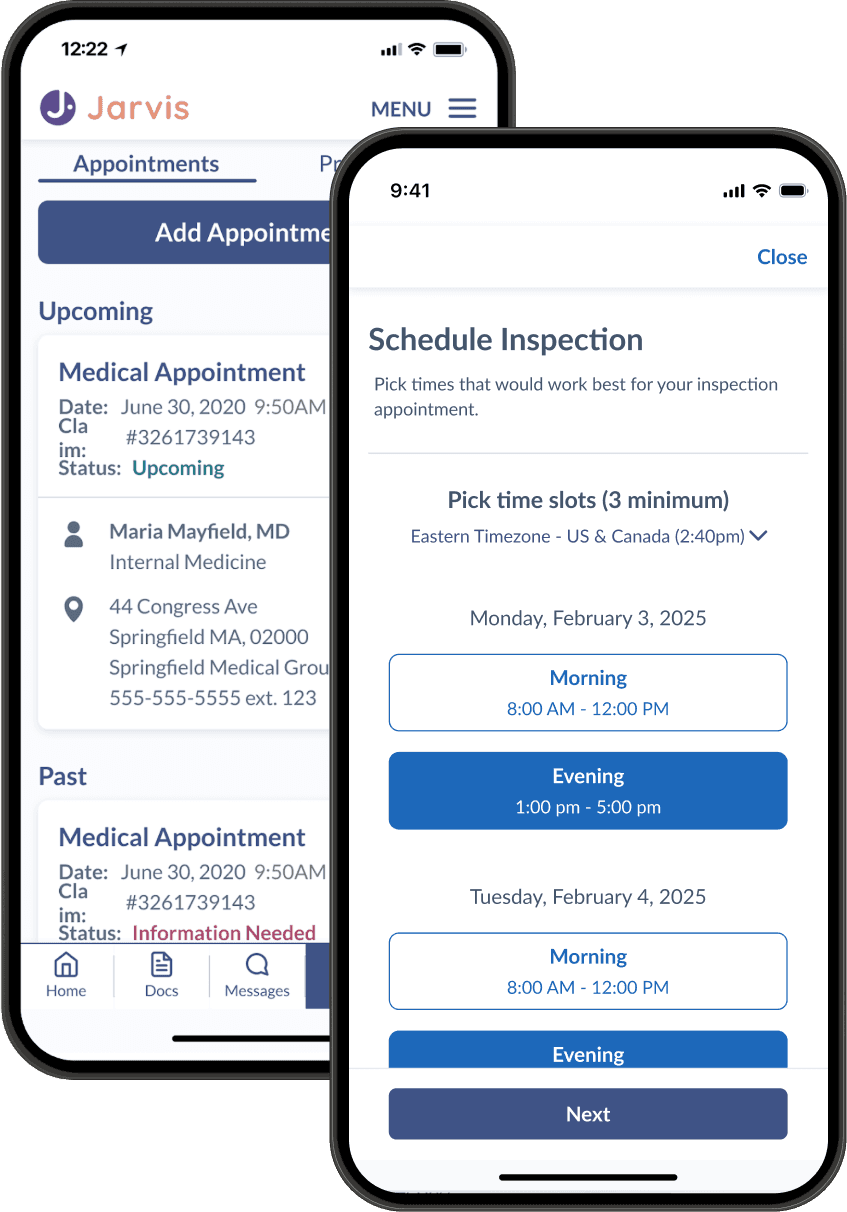 Our platform is designed for the coordination challenges unique to insurance. Medical evaluations automatically factor in work restrictions and provider specialties. Property inspections sequence contractors and adjusters efficiently. Auto repair appointments connect claimants with in-network shops while managing rental car coordination. Pre-visit questionnaires and post-visit follow-ups capture documents automatically, and reminder sequences are configurable.